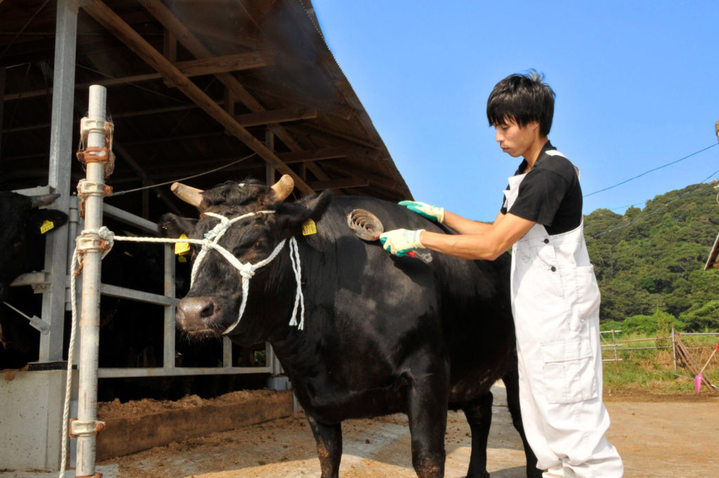 千葉県の黒毛和牛はあまり馴染みがないかも知れません。しかし千葉県の外房は、黒潮の影響によって「夏は涼しく冬は暖かい」海洋性気候となっていて、暑さや寒さが苦手な牛にはたいへん良い環境です。たとえば千葉県安房郡の嶺岡地域は日本の酪農の発祥地であり、明治の初め頃からホルスタインが導入されて、大正期には酪農がとても盛んでした。一方千葉県の肉用牛は、乳用牛から生産される乳用種、交雑種を中心に発展してきましたが、近年、輸入牛肉との差別化から、黒毛和牛の生産基盤の強化と出荷頭数増加の取り組みが進められています。